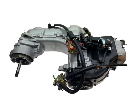 This is the 4-Stroke complete engine, long crankcase. For the 100cc big bore engine we install the 50mm big bore cylinder and piston and a performance head in the engine.
