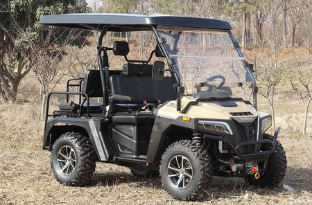 This beast of a golf cart has all of the amenities anyone could possibly desire.  A powerful 400cc engine, stereo, back up camera, big beefy 25 inch tires with a top speed of 43MPH. That's faster than most buggies and ATVs that we sell. It can hardly be classified as a golf cart. If you live in a community that only allows golf carts and not ATVs, UTVs, or buggies then this is the way around that because technically it is a golf cart.